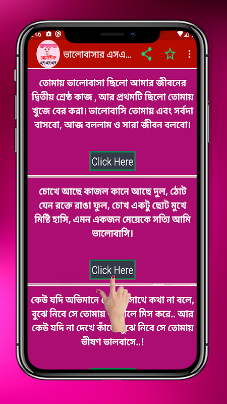 → Love SMS Bangla অ্যাপটি আপনার ভালো লাগলে অবশ্যই আপনার মূল্যবান কমেন্টস ও রেটিং দিয়ে আমাদের আরো নতুন নতুন Bangla Message এড করতে উতসাহিত করবেন। ধন্যবাদ।