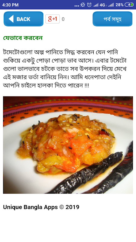 our TESTY BHORTA recipe Apps in bengali is for all bengali speakers. those who like to cook or ranna banna.