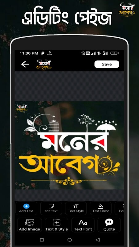 Bạn có thể thêm nhiều văn bản vào hình ảnh, thêm kiểu màu và bạn có thể viết tất cả các phông chữ tiếng Anh Bangla yêu thích của mình.