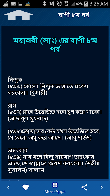 Mohanobir Adorsho Bani~মহানবীর বাণী ইসলামিক উক্তি is an bangla apps include collection of islamic quotes of hazrat muhammad SallallahuAlaihiwasallam in Bangla quotes/ Bangla ukti, as bani in bengali. In this app you will found lots of inspirational and dirrectional bangla quotes of rasulullah as bangla islamic quots. From the various quotes, mohanobir jiboni,nobijir adorsho bani, monishider bani, inspiring quotes, monishider jiboni and rasuler bani we collected the best quotes as best resource for you. nobir bani is the directional guideline for all of us.