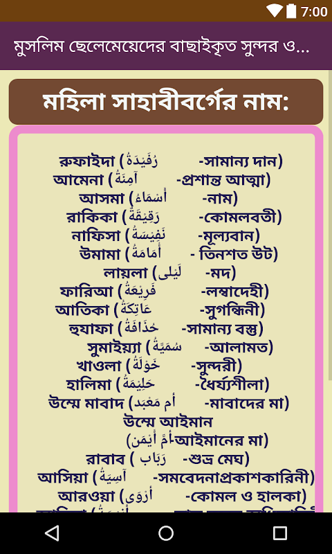 Thông tin APK মুসলিম ছেলেমেয়েদের বাছাইকৃত সুন্দর ও আধুনিক নাম