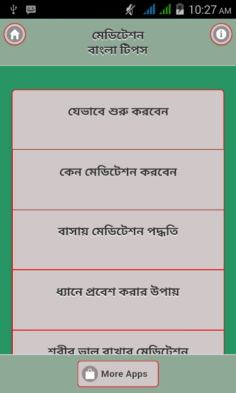 মেডিটেশন হল মানুষের শরীর এবং মনকে সুস্থ এবং সুন্দর রাখার কার্যকরী উপায়। আমরা অনেক সময় দীর্ঘদিন কাজ করার কারনে শারীরিকভাবে দুর্বল হয়ে পরি এবং কাজের প্রতি আমাদের মনোযোগ হারিয়ে ফেলি, মেডিটেশনের মাধ্যমে আপনি আপনার হারানো মনোযোগ ফিরে পেতে পারেন। মেডিটেশন একটি মানুসিক ব্যায়াম যা আপনার মনকে রাখবে ফুরফুরে এবং আনান্দময়। আমাদের মনোবিজ্ঞানীগণ দীর্ঘদিন সাধনা করে এই অ্যাপ এ উল্লেখিত ফরমুলাগুলো আবস্কার করেছেন। আমাদের সকল মেডিটেশনের ফর্মুলা বা মেডিটেশন করার উপায়গুলো বাস্তব এবং বিজ্ঞানসম্মত।