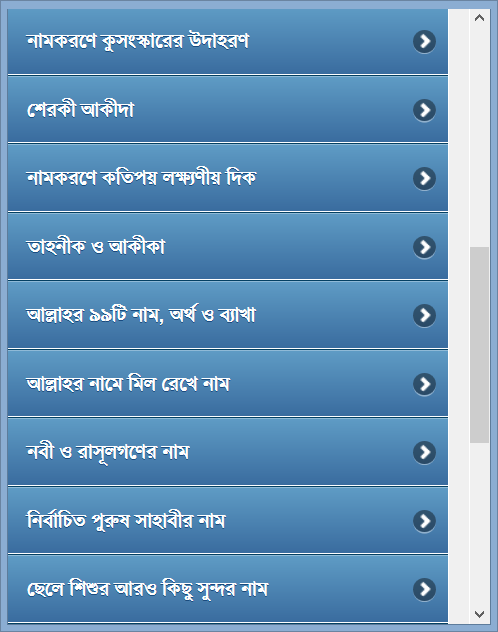 মুসলিম শিশুর সুন্দর ও অর্থপূর্ণ নাম, অর্থপূর্ণ রাখার গুরুত্ব, নামের অর্থ ইত্যাদি নিয়ে এই অ্যাপ ডেভেলপ করা হয়েছে। এখানে মুসলিম শিশুর সুন্দর ও অর্থপূর্ণ নাম, নামের অর্থ ছাড়াও যেই বিষয়গুলো আছে সেগুলো হচ্ছেঃ