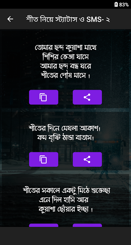 শীতের স্ট্যাটাস ও এসএমএস রয়েছে - নতুন নতুন বাছাইকৃত কালেকশন রয়েছে অ্যাপটিতে।