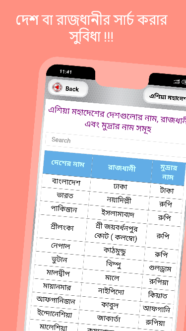 আমাদের এই অ্যাপে পাবেন মহাদেশ ভিত্তিক পৃথিবীর সকল দেশের রাজধানী ও মুদ্রার নাম