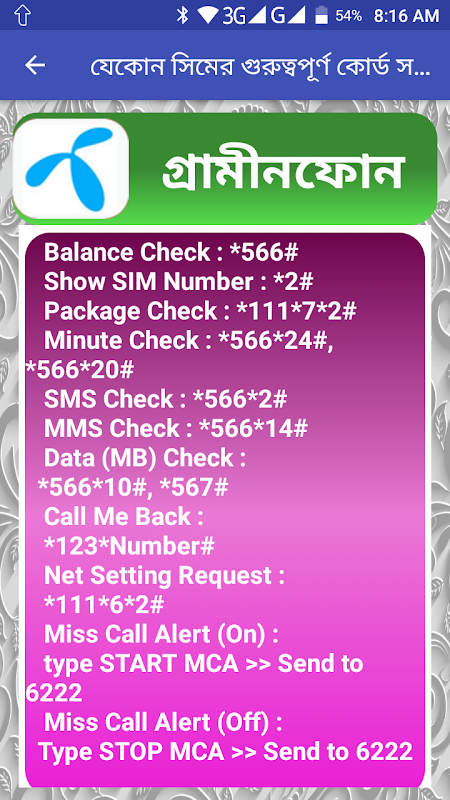 Thông tin APK সকল সিমের দরকারি কোড-Sim Code