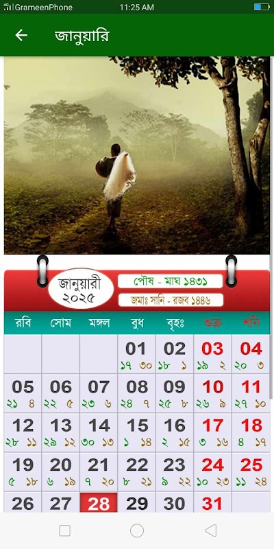 Lịch tiếng Anh tiếng Ả Rập Bangla 2025 được bao gồm trong ứng dụng này. Tải xuống Lịch Bengali 2025 bằng tiếng Bengali ngay hôm nay.