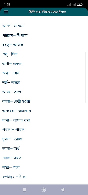 Tiếng Hindi được dịch sang tiếng Bengali. Bạn có thể học tiếng Hindi rất dễ dàng nếu bạn là người Bengali hoặc nếu bạn hiểu tiếng Bengali thì bạn có thể học tiếng Hindi rất dễ dàng.