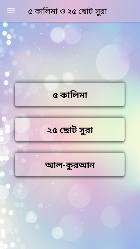 সহজে মুখস্ত করা যায় এবং প্রতিদিন নামাজে ব্যবহার করা হয় এমন সূরা নিয়ে এই app তৈরী করা হয়েছে।