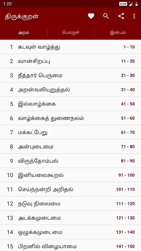 • Điều hướng đến Kural trước và tiếp theo, Adhigaaram và Iyal trở nên dễ dàng.