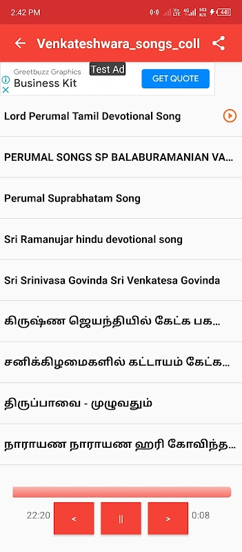 வெங்கடாசலபதி பாடல்கள் தமிழ் - Các bài hát Venkateswara trong tamil mp3 phát các bài hát Venkateswara về thần Venkateswara trong tamil. Ứng dụng này chứa các bài hát âm thanh Venkateswara âm thanh không ngừng nghỉ. Không cần tải xuống âm thanh Venkateswara Songs, chỉ cần phát trực tuyến các bài hát tamil của Venkateswara từ trực tuyến. Trình phát trực tuyến các bài hát tamil Venkateswara yêu cầu Internet để phát các bài hát âm thanh. Âm thanh của Venkateshwara Songs là âm thanh rõ ràng và chất lượng tốt.