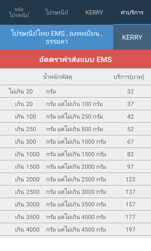 ไปรษณีย์ KERRY รหัสไปรษณีย์ไทย 1.1.0