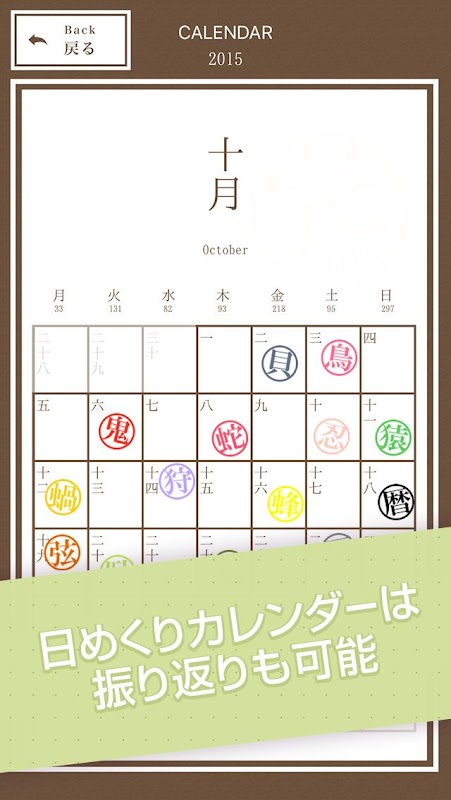 カレンダーをめくった日にはそのキャラクターのスタンプが押されていきます。