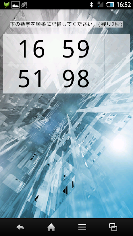 1.画面に表示される数字,記号,画像をイメージで覚えたり、暗算したりして脳を鍛えます。繰り返しのトレーニングで、記憶力がアップするトレーニング内容になっております。