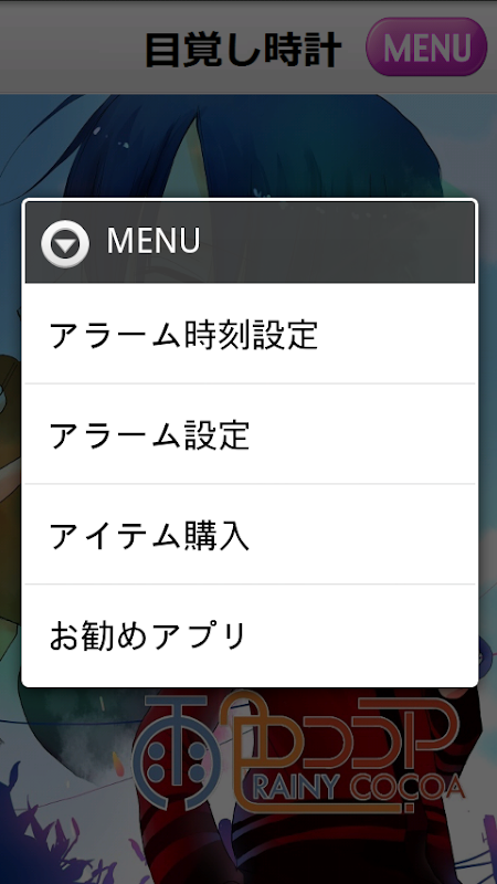Một ứng dụng đồng hồ báo thức (ứng dụng giọng nói diễn viên lồng tiếng) rằng nhân vật của e-manga "ca cao màu mưa" đang được bán!