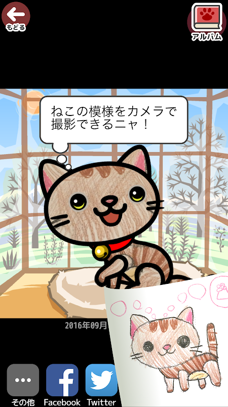 カメラで撮影した画像からオリジナルのねこをセイゾウできます!好きな模様を描いてセイゾウキで撮影すればあっという間に動き出すよ!