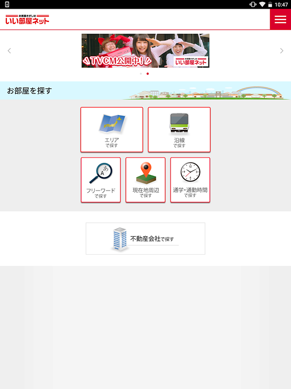 TVCMでお馴染み、全国の賃貸マンション・賃貸アパートの不動産情報検索サイト【いい部屋ネット】がアプリになりました。