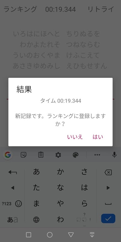 Nó là một ứng dụng gõ đơn giản chỉ cạnh tranh cho tốc độ đầu vào nhanh nhẹn của Iroha Niho. Hãy nhắm vào thứ hạng đầu tiên.