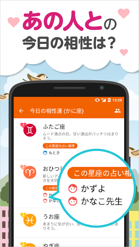 毎日の相性占いと一緒に名前を見ることができるので、今日相性が良い人がまるわかり。