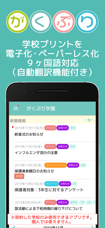 Thông tin APK がくぷり 学校プリント電子化、配信、ペーパレス