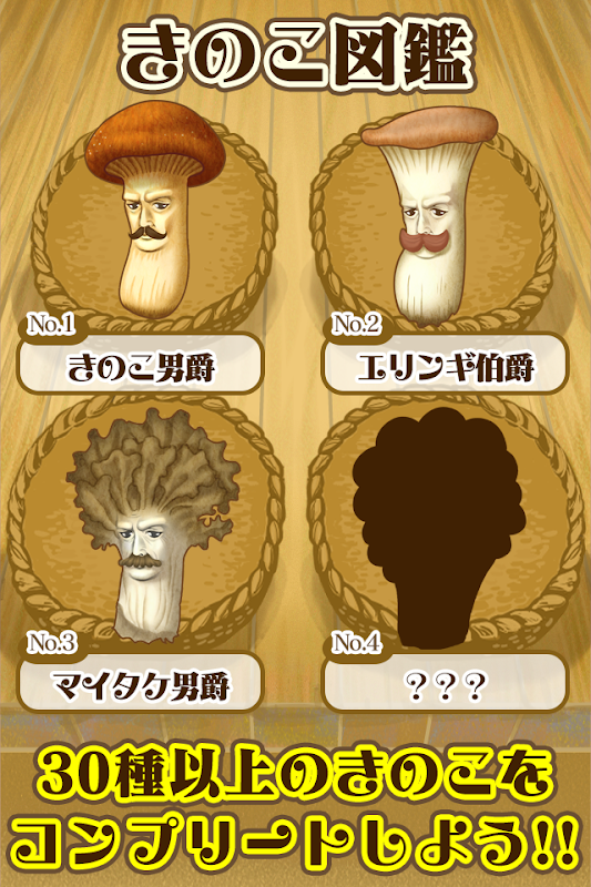 「紳士なきのこ」を育てるジェントルメーンな育成ゲーム!!30種類以上のきのこをコンプリートしよう!