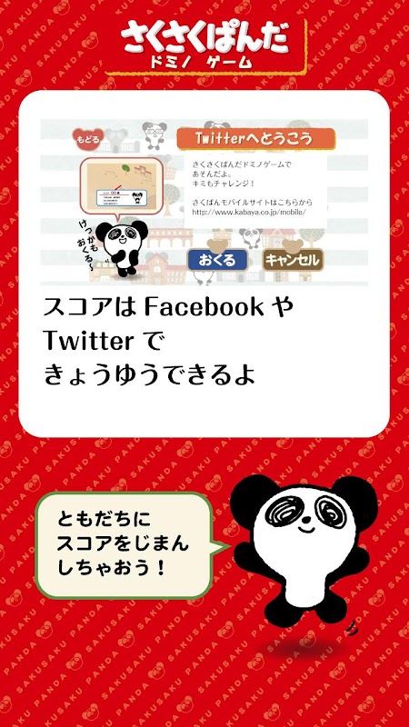 ゲームのあとは、ぜひ、Twitter・Facebookでゲーム結果をお友達と共有しましょう!