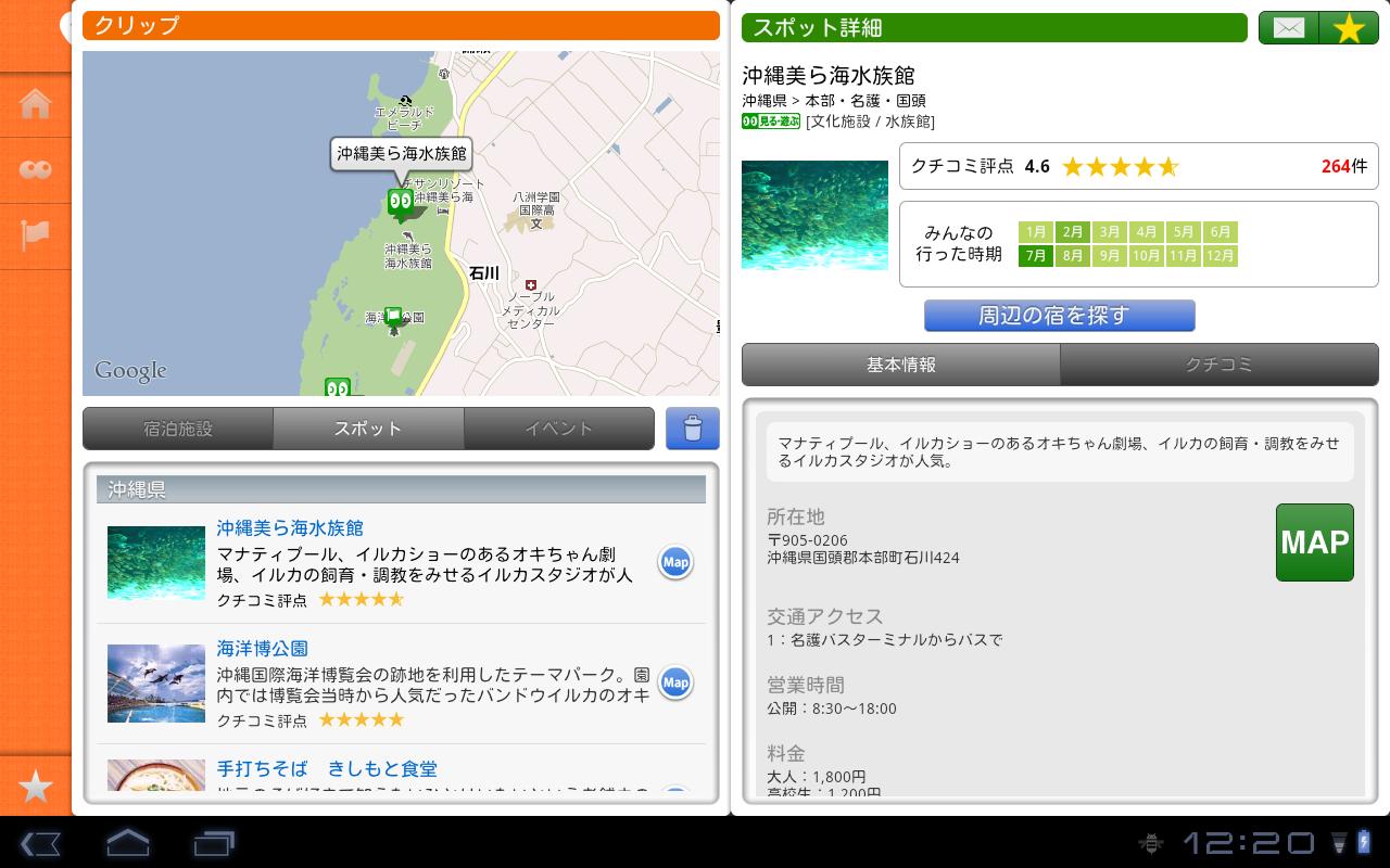 「じゃらん for タブレット」では、2万軒以上の宿泊施設やクチコミ、全国約14万件を超える観光スポット情報、約3万件のイベントや18万件ものクチコミをみることができます。