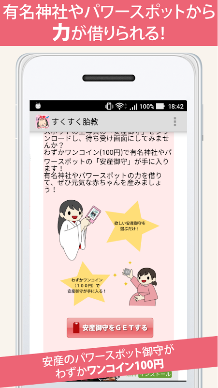 ・Bạn có thể tải xuống ảnh của các ngôi đền nổi tiếng cầu nguyện cho việc sinh nở an toàn như một lá bùa hộ mệnh.