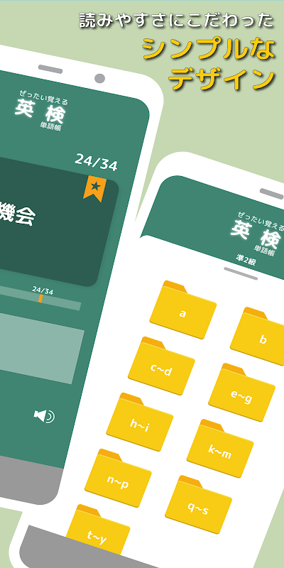 「ぜったい覚える!英検準2級単語帳」は、英検準2級によく出る英単語を591個登録した、英検準2級合格を目指す方のための学習ツールアプリです。