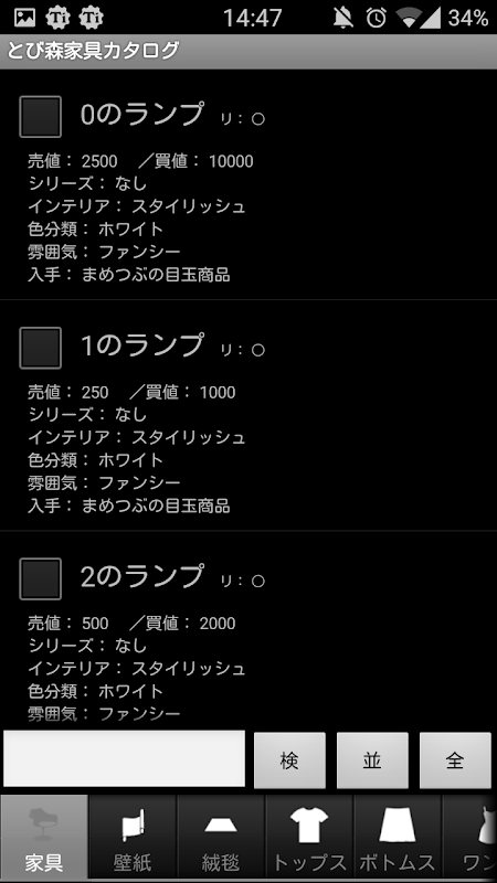 Tôi có thể dễ dàng kiểm tra danh sách các đồ nội thất và các mặt hàng của Animal Crossing.Nhận quản lý của tờ séc, còn giá bán rõ ràng của côn trùng và cá!
