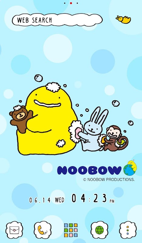 きいろくてふわふわの癒やし系キャラ「ぬ~ぼ~」がきせかえテーマになりました!壁紙を二種類搭載しているので気分に合わせてきせかえてみてね♪