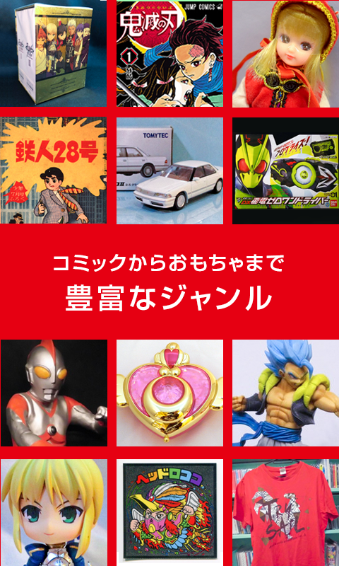 コミック、雑誌、書籍、ヴィンテージ書籍、TOY(ホビー)、ドール、同人、アイドル、カード、シール、ゲーム、DVD、Blue-ray、コスプレなど、取り扱い商品カテゴリラインナップはもちろん、取り扱いの年代も幅広く、膨大な商品点数を取り扱っており国内最大級の品揃えです。