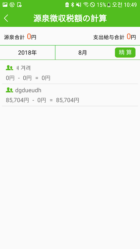 7. 源泉徴収税額の自動計算 - 上半期、下半期に分けて勤務者別に整理して表示