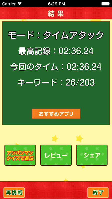 Tìm kiếm từ trên anime nổi tiếng "Anpanman", là một ứng dụng từ câu đốChỉ theo dõi để tìm ra Anpanman ngữ liên quanHãy cạnh tranh trong các chế độ khác nhau!