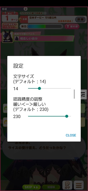 Lớp phủ các hiệu ứng của các tùy chọn sự kiện Uma Musume Pretty Derby trên màn hình trò chơi.