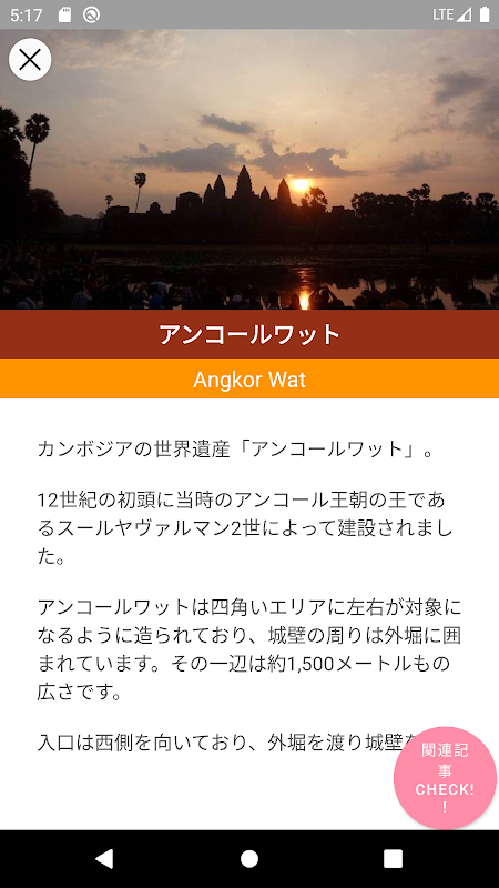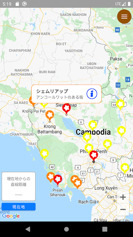 カンボジアにある各遺跡や見所が地図上に表示されます。