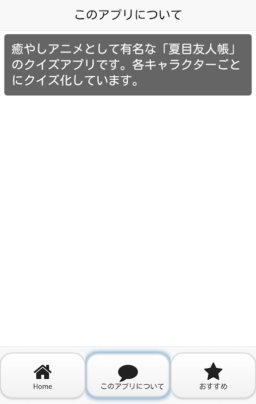 This is a quiz app built an era as healing anime "Natsume's Book of Friends". Please to challenge willingly because the difficulty is not so high.