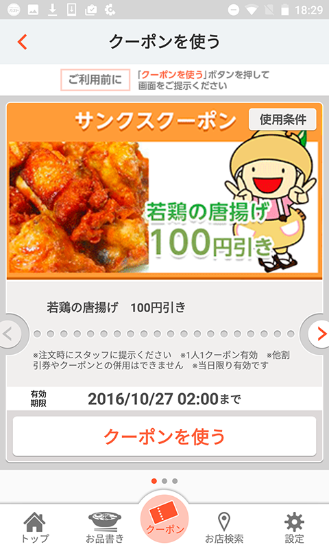 お店で使えるお得なクーポンを配信中!クーポンは随時更新されるのでこまめにチェックしよう