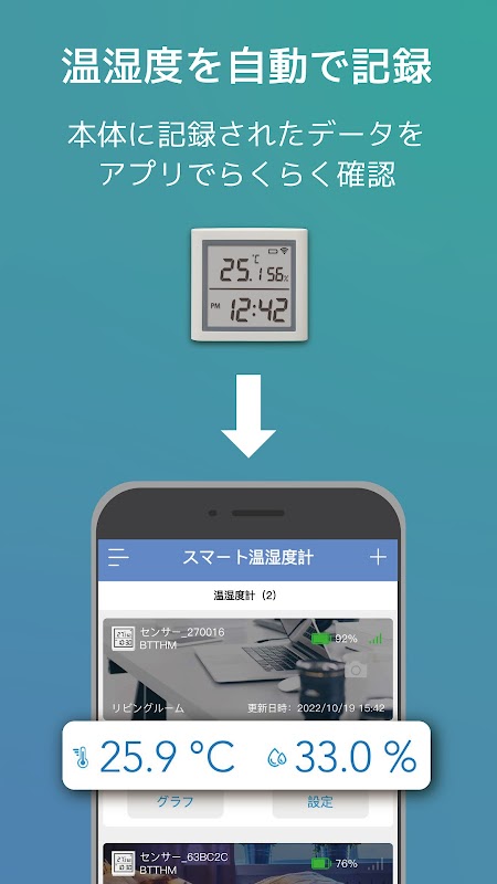 ・Hiển thị nhiệt độ/độ ẩm trên điện thoại thông minh của bạn