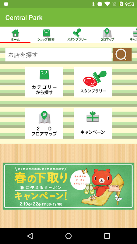 セントラルパークの店舗情報をジャンル毎に提供します。