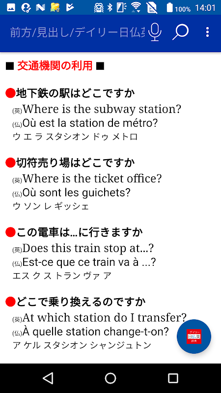 Chúng tôi đã tích hợp ba bộ từ điển: Nhật-Pháp-Anh / Pháp-Nhật-Anh hàng ngày (1.200 yên) + Nhật-Ý-Anh / Ý-Nhật-Anh (1.200 yên) + Nhật-Tây Anh / Tây-Nhật-Anh ( 1.200 yên). Bạn có thể tìm kiếm xiên giữa các từ điển.