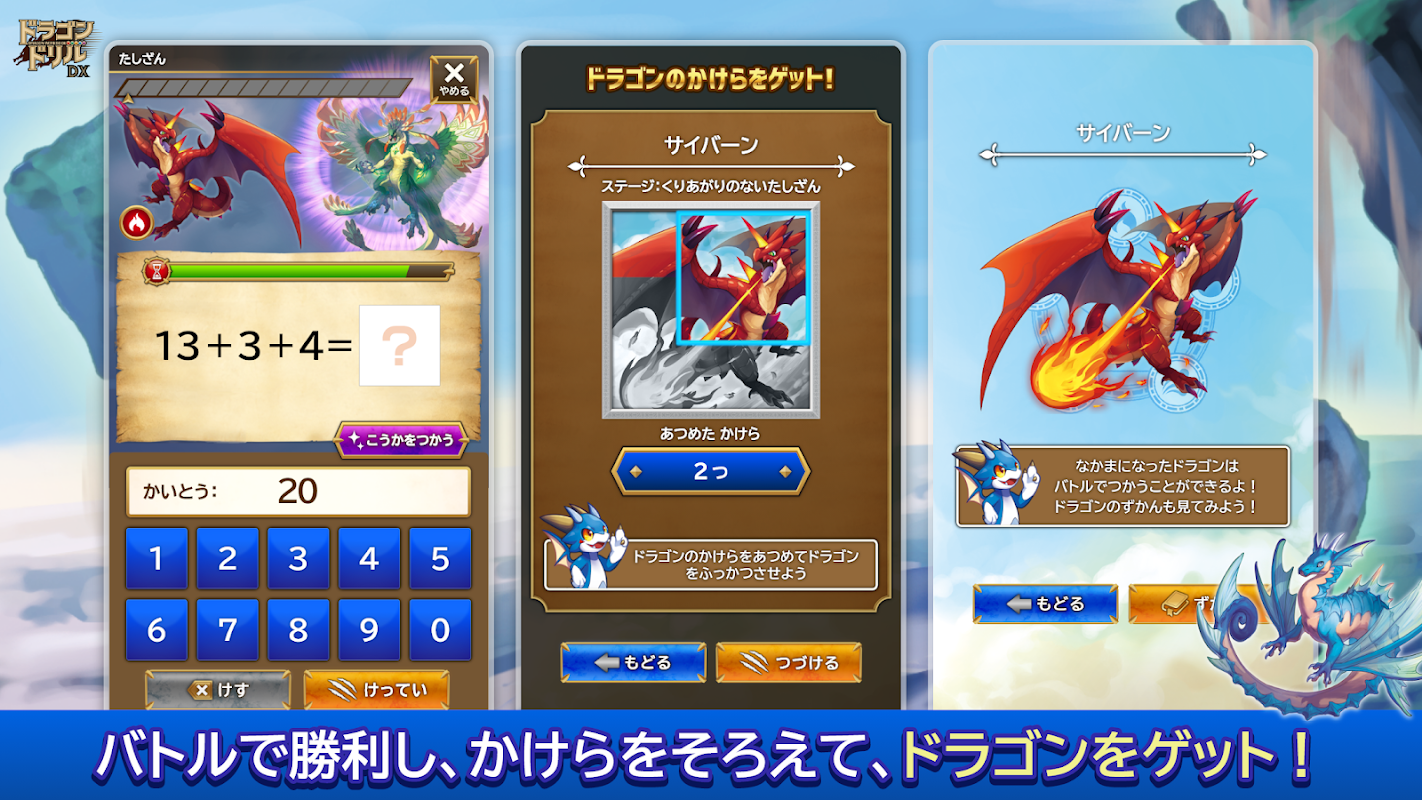 Hãy hoàn thành "Bách khoa toàn thư về rồng" bằng cách giải các bài toán và tiếng Nhật trong khi tiếp tục trận chiến rồng!