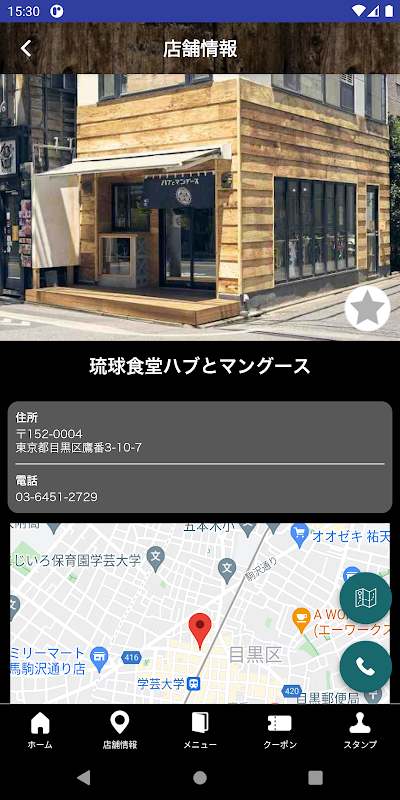 学芸大学駅からすぐの琉球食堂ハブとマングース、Barはぶまん、大衆ビストロ煮ジルの共通公式アプリです。