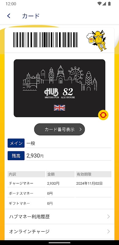 ハブメンバーズカードアプリ【HUB】 1.0.12