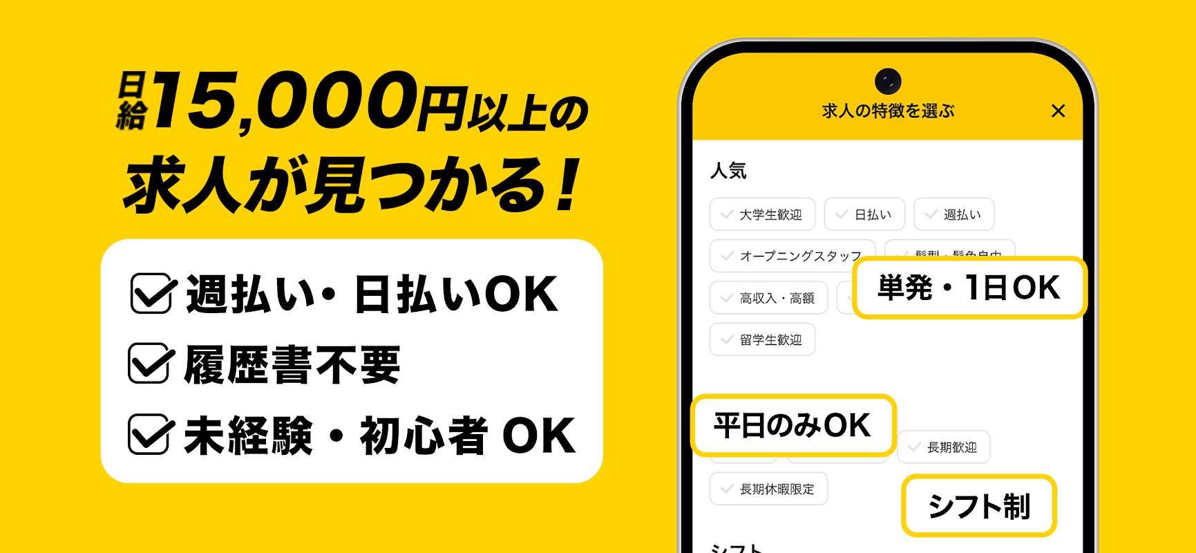 ・Bạn có thể nhanh chóng tìm được việc làm bán thời gian với chức năng giữ và đẩy.