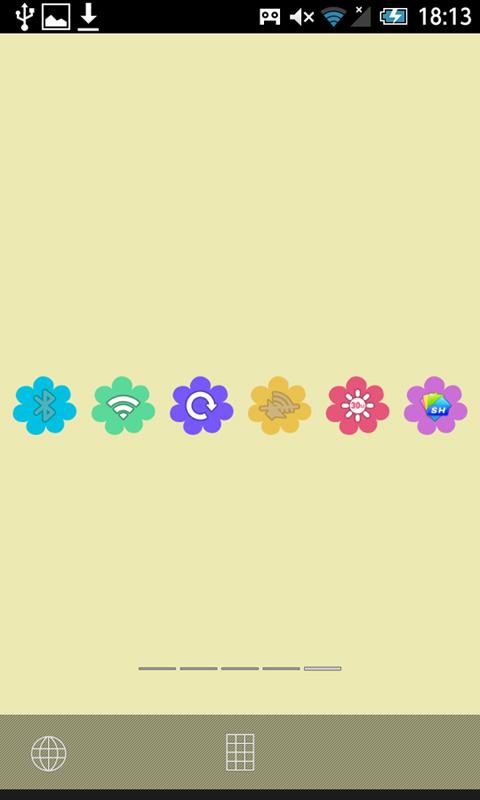 Bluetooth/Wi-Fi/画面の自動回転/マナーモード/バックライト/SHSHOWリンク 6種類の設定がセットになったウィジェットです。