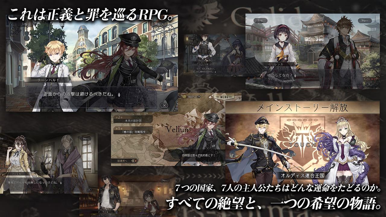 オルディア大陸、7つの国の7人のイケメン・美少女の主人公を育成しそれぞれの視点 から、この世界の正義と罪のストーリーを追体験する本格ストーリーRPG。 『僕にとっての正義は、世界にとっての罪なのか…』