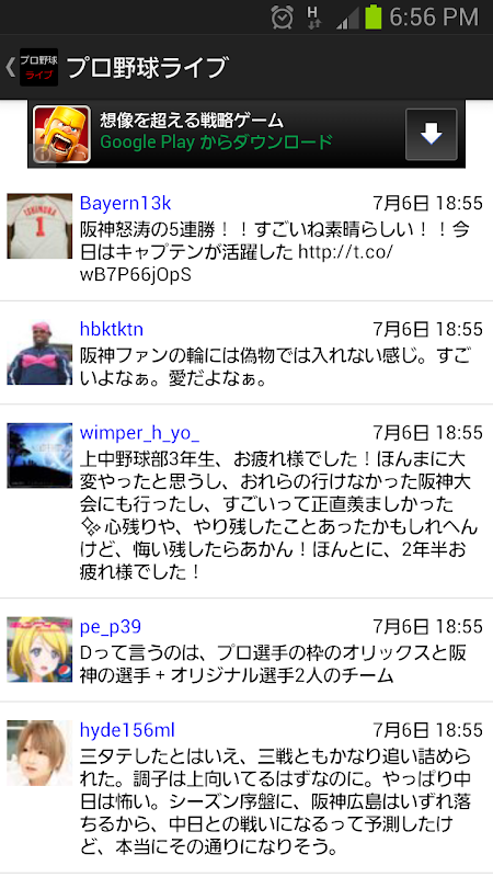 Bạn có thể kiểm tra trong tweet của quý vị thời gian thực về mỗi đội bóng chày chuyên nghiệp của (tweet). Nếu bạn nhấp vào (tweet) tweet của quý vị, một sự chuyển tiếp đến các trang web / ứng dụng Twitter chính thức. Từ đó, theo lời, ReTweet, người sử dụng cũng có thể.