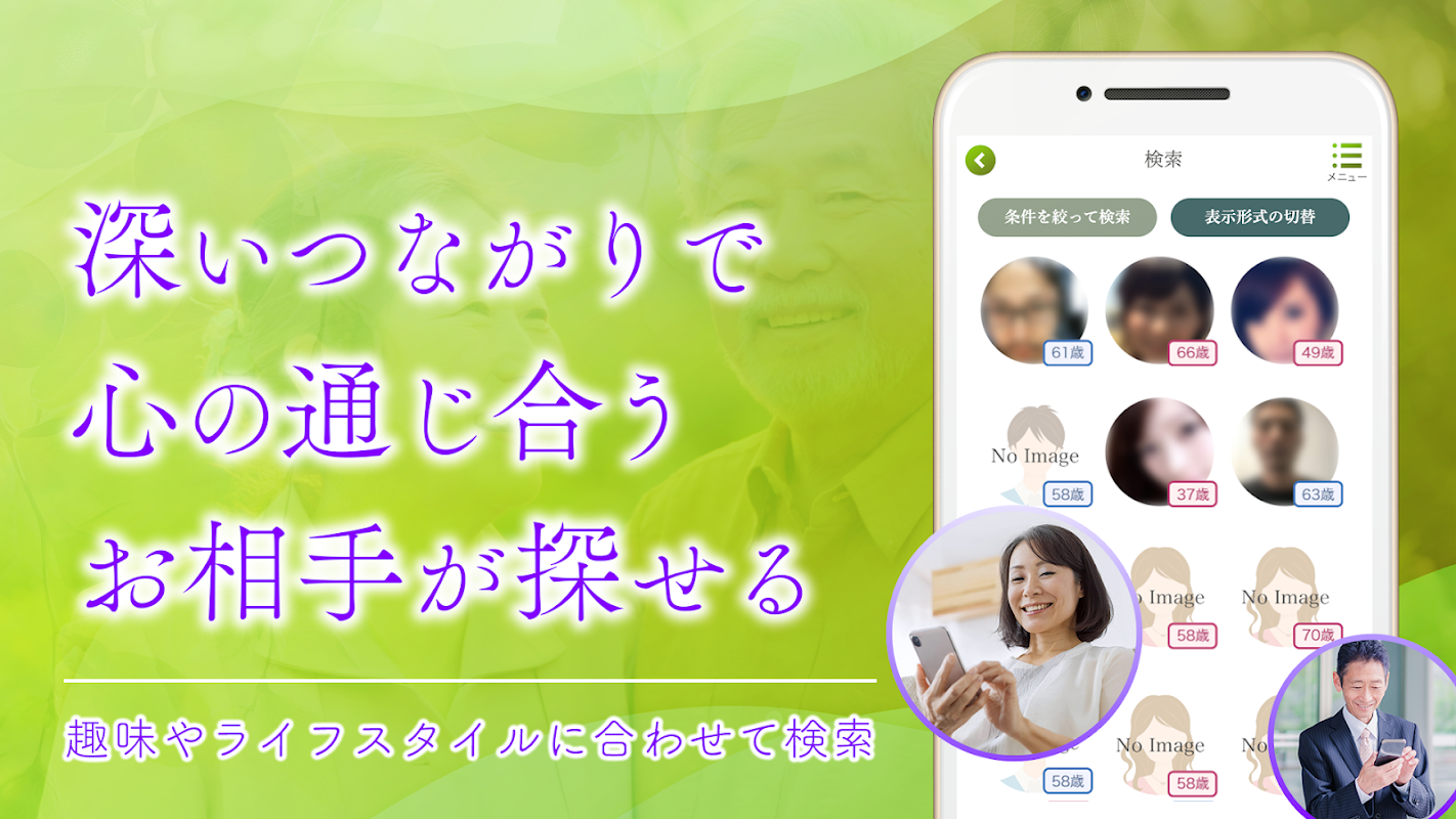 Một sự kết nối chân thành ở nửa sau của cuộc đời. Nó là miễn phí và dễ dàng để đăng ký, đồng thời cung cấp một nơi mà những người trung niên có thể yên tâm sử dụng nó. Tìm kết nối tuyệt vời theo tốc độ của riêng bạn.
