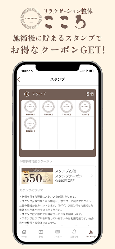 Ngoài ra, bạn có thể kiểm tra menu và khoảng thời gian mong muốn và đặt chỗ từ điện thoại thông minh của mình bất cứ lúc nào. Bằng cách cài đặt ứng dụng, bạn có thể sử dụng Relaxation Seitai Kokoro thuận tiện và gần gũi hơn với bạn.